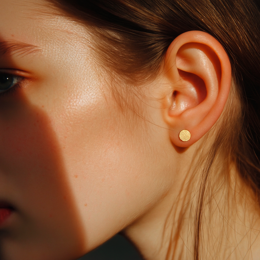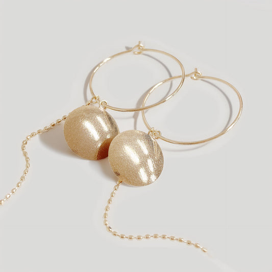 10K Yellow Gold Circle plate and chain charm pierced earrings