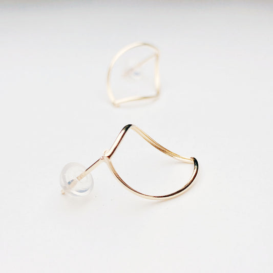 10K Yellow Gold Hana And Ruri Oval curved motif pierced earrings