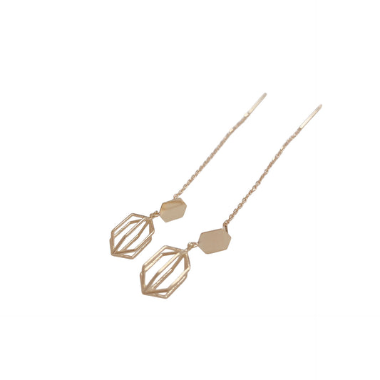 10K Yellow Gold Hana And Ruri 3D Hexagonal Wire motif pierced earrings
